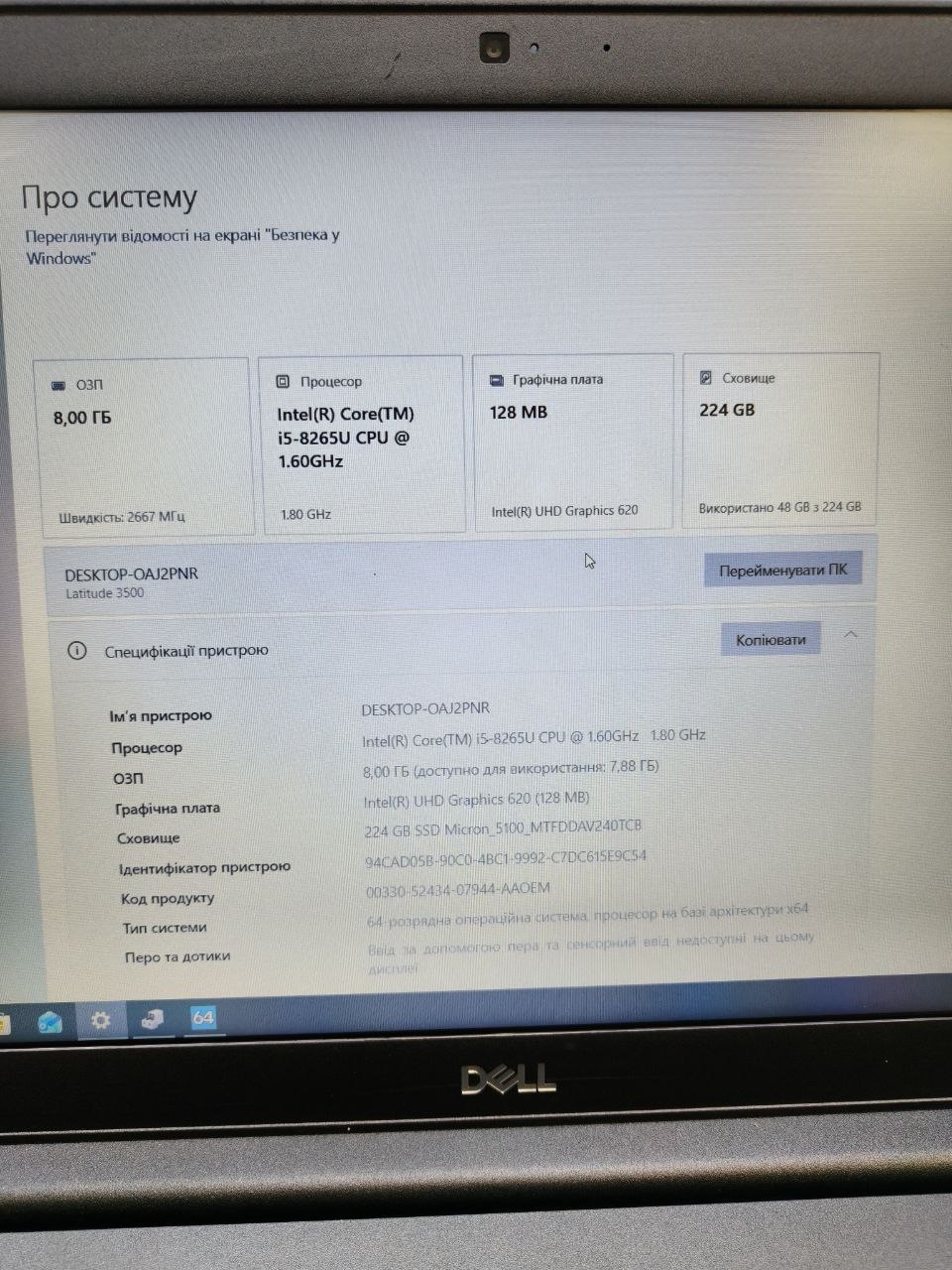 Офісний ноутбук Dell latitude 3500+SSD 240Gb+RAM 8Gb